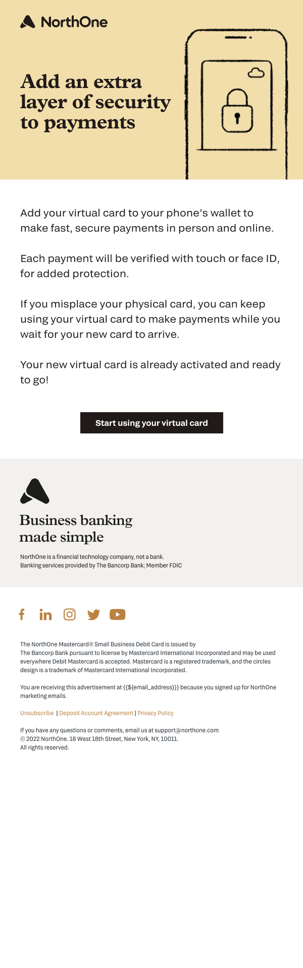 At NorthOne I took ownership of the brand voice and made it what it is today. I wrote UX copy, web copy, SEO, customer emails and digital ads. As the company rapidly grew I moved up to Senior Copywriter. In this role I was able to spend more time on larger brand campaigns and creative strategy. NorthOne recently raised $67 million in their series B round. I’m proud of the role I played in building this company from the ground up over 3 years.